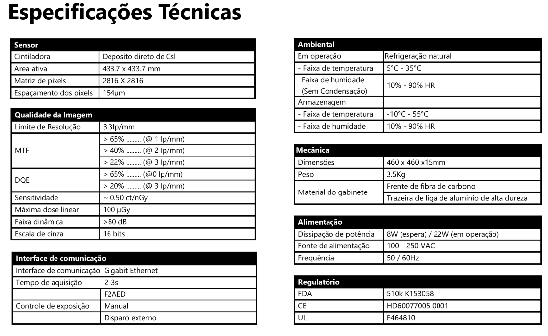 Detector Radiográfico DR Multiuso de 35.6 cm x 43.2 cm (14”x17”) sem cabo (wireless).